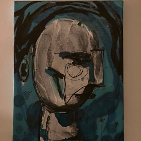 Fun-fact i med bilde-historikken : maleriet ble opprinnelig stjålet fra gallerist i Bergen , men gjenfunnet etter etterlysning å omtaler fra kunstneren - mao , et ettertraktet bilde😀
