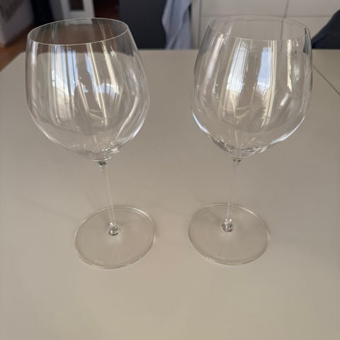 4 helt nye og ubrukte Biri continental rødvinsglass selges! Kun tatt ut to fra esken for å vise hvordan glassene ser ut. Alle fire glassene selges i opprinnelige esker.