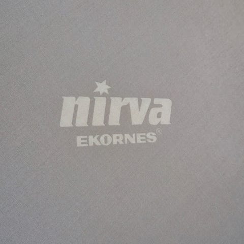 Ekornes Nirva madrass i grått trekk. Rektangulær madrass som egner seg til bruk i seng eller som ekstra gjestemadrass. Yttertrekket er i tekstil. Noen tegnestiftmerker i stofftrekket på den ene siden av madrassen. Ellers uten bruksmerker.