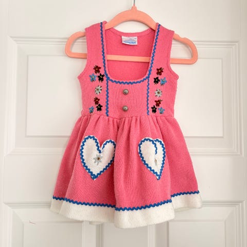 Søkeord: babykjole, strikkekjole, strikket kjole, rosa kjole, vintage stil, baby 74, baby 80, pike, barnekjole, sommerkjole, fotografering, penkjole 🌸