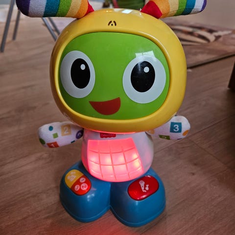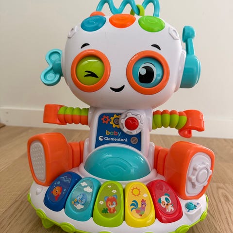 Lekeroboten har fargerike knapper, blant annet et klaviatur med flere tangenter i ulike farger. Den har store øyne, hodetelefon-lignende detaljer og bevegelige armer. Produktet er laget i plast med flere sterke farger som hvit, oransje, grønn, blå og gul.