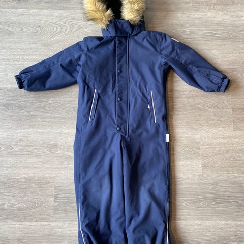 Blå Reima dress med avtagbar hette med pels. Dressen har også refleksdetaljer. Str 116/6 år. Vi kjøpte dressen brukt, men rakk ikke bruke den noe særlig selv. Litt vanlig bruksmerker på den, men masse bruk igjen! Gummistropper for sko/støvler og glidelåslommer. Navnelappen fra forrige barn som brukte den er fortsatt på, men det kan kanskje fjernes om det er ønskelig
