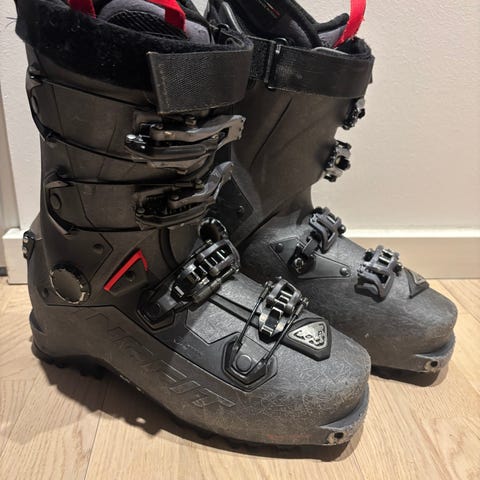 Dynafit Hoji Free130 toppturstøvler. Støvlene har tre spenner og powerstrap øverst for god tilpasning rundt fot og legg. Gå-/kjøremekanisme på baksiden for enkel overgang mellom oppstigning og nedkjøring. Tech-inserts i tå og hæl for bruk med kompatible toppturbindinger. Grov såle tilpasset gange og innsteg i binding. Egnet til topptur og frikjøring. Ny i 2021. Kun brukt 3 sesonger. Liner har små slitehull innvendig i hæl. Ikke merker dette i bruk. Liner kan evt kjøpes ny for kr 2.100. Kan sendes.