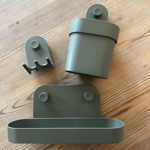 Egner seg til bruk på kjøkkenbenk/vask for organisert oppbevaring av kjøkkenkluter.