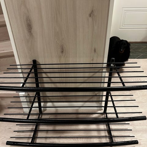 Skostativ fra europris kan brettes sammen. Plass til ca 6 par sko