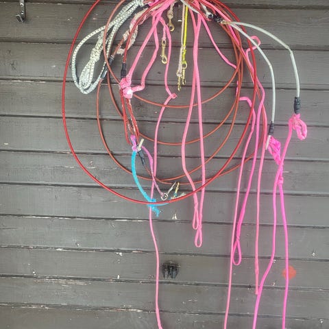Gule bakliner og nakkeliner med refleks. Bronsekroker til nakkelinene.