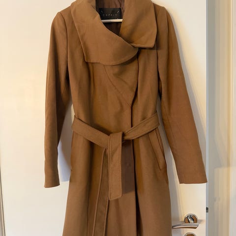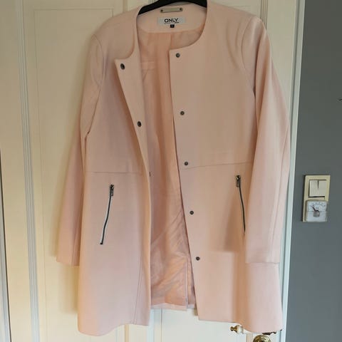 ONLY kåpe for dame i størrelse L. Kåpen er rosa. Modellen har belte i midjen og høy krage. Egner seg som ytterplagg i overgangssesonger og kan brukes til både hverdags og mer formelle anledninger.