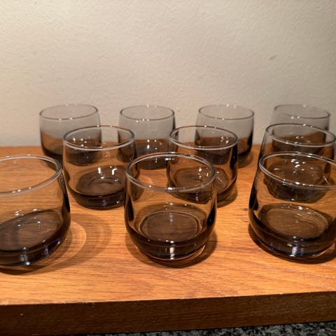 Søkeord: Shottglass, shot, drammeglass, hetvin, brennevin, pjolter, retro, retrokjøkken, vintage.