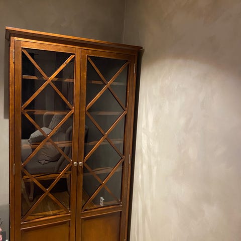 Pent brukt massivt vitineskap, veldig fint med ledlys i alle 4 hyllene. Må hentes.