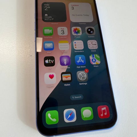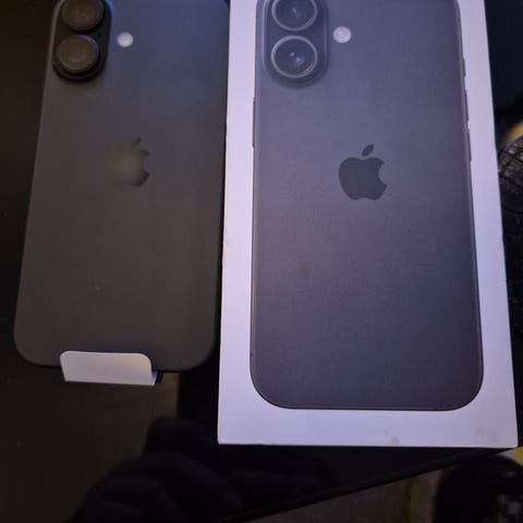 Apple iPhone 16 plus , mobiltelefon med 128 GB lagringsplass. Modellen har dobbelttkamera på baksiden og stor berøringsskjerm i front. Egner seg for vanlig bruk som samtaler, meldinger, surfing, apper og lagring av bilder og video. Fargen fremstår som mørk basert på bildene.