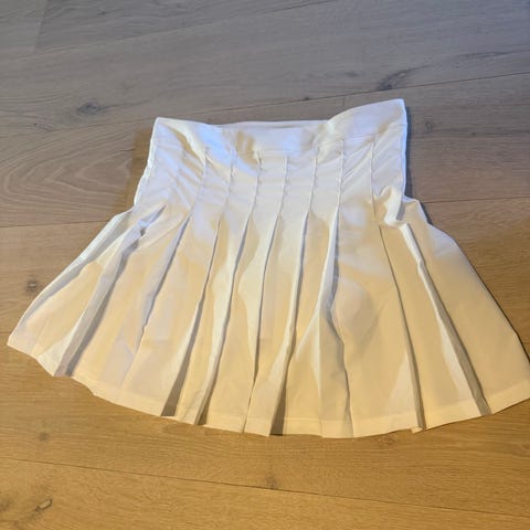 Babolat tennissett med topp og skjørt i rosa farge. Topp med V-hals og mørkeblå kanting rundt hals og ermer. Skjørt i matchende rosa med elastisk linning. Begge deler har Babolat-logo trykket foran. Selles sammen. Skjørt er med innebygd shorts.