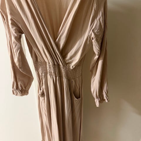 Pen omslagskjole fra Filippa K. Størrelse medium. Pent brukt. Lys rosa farge. Knytes i livet. Halvlange ermer. Veldig flatterende. Kanten på det ene ermet har løsnet i stingene. Dette kan lett fikset ved å sy noen fester. Latt det være hvis ny eier ønsker å gjøre det selv.