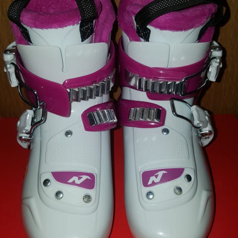 Relativt lite brukt og selges grunnet ny størrelse, Nordica PCarv1 skistøvler for barn i svart med blå og grønne detaljer. Modellen har justerbar stropp over vristen og enkel innstegsløsning. Sålelengde 215 mm (oppgitt på sålen). Passer til vanlige alpinbindinger for barn. Ytterskall i plast med gummierte partier under sålen for bedre feste ved gange. Egnet til alpint bruk for barn som trenger stabile og lett håndterbare skistøvler.