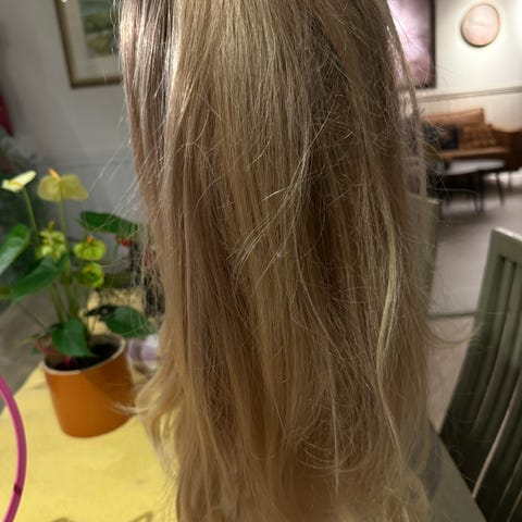 Stylet kun med varm børste, aldri brukt styling som lak eller mousse,varmt stang eller noe sånt.