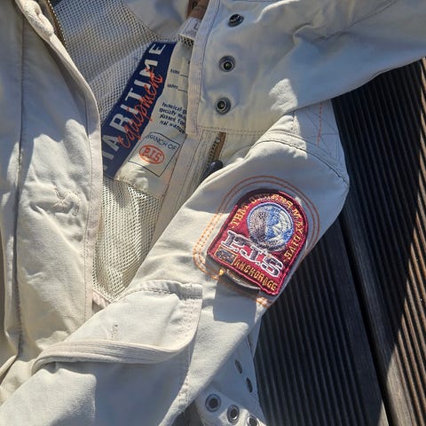 Parajumpers kåpe for dame i størrelse L. Kåpen er blå og laget i polyester, med lett vattert og quiltet design. Modellen har hel glidelås foran og hette. Ermene og sidene er sydd med horisontale paneler som gir en jevn fordeling av isolasjonen. Innsiden har lys kontrastfarge og merkelapper som viser at kåpen er superlett. Egner seg som yttertøy i kjøligere vær og til hverdagsbruk.