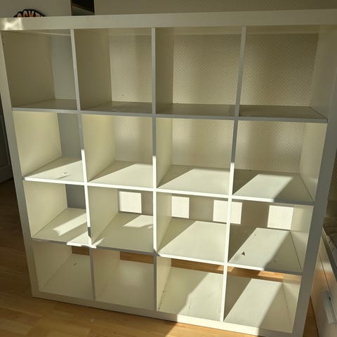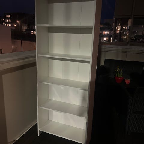 Svart (mørk brun-svart) ikea hylle. Nederste hylle er ganske slitt, se bilde nr 2.