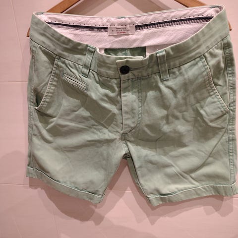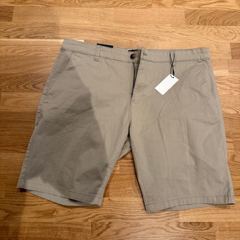 Selected shorts for herre i størrelse L. Shortsen er beige og laget av bomull. Klassisk modell med beltehemper, stikklommer foran og baklomme. Egnet til hverdagsbruk og fritid i varme perioder.