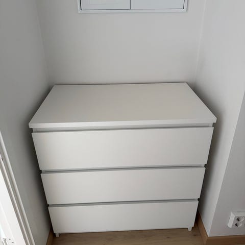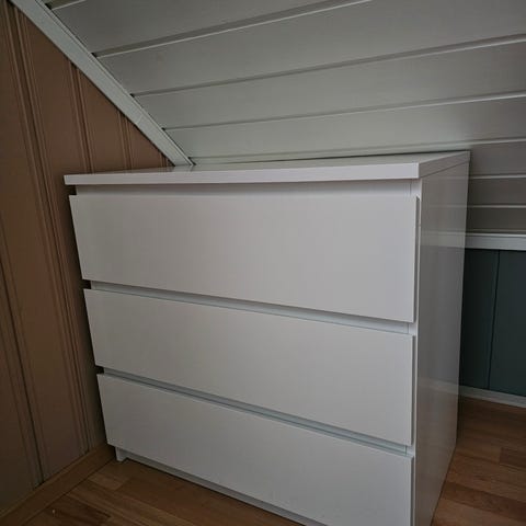 Malm kommode med 3 skuffer, hvit