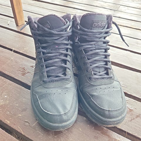 Adidas sneakers joggesko i høy modell i svart farge i størrelse 43. Skoene har snøring foran, polstret ankelparti og flat gummisåle. Overdelen består av syntetiske materialer og tekstil. Passer som hverdagssko eller fritidssko i kjøligere vær på grunn av den høyere skaftmodellen og polstringen rundt ankelen.