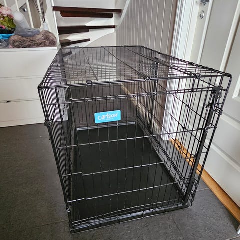 Carlson Pet Products, Heavy Duty Wire Crate. Hundebur i svart metall. Buret har gitterkonstruksjon med låsbar dør i front og uttakbar bunnplate i plast for enkel rengjøring. Egner seg til bruk innendørs, for transport eller som hvileplass for hund.