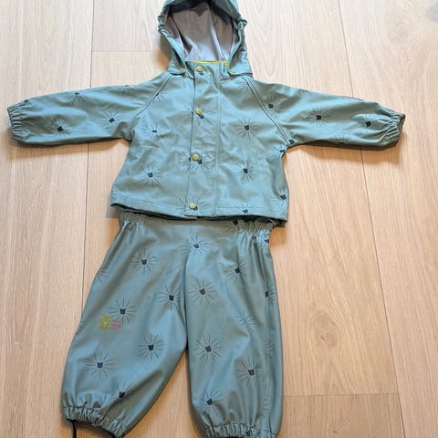Pent brukt to delt plask regnsett str 116, kjøpt nytt av meg i 2024, brukt veldig lite.