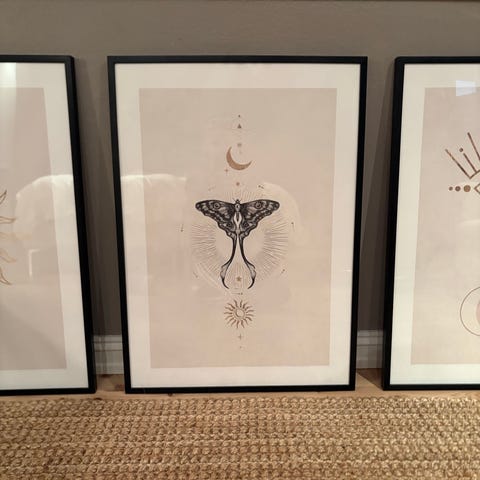 Selger en plakat med ramme kjøpt fra Desenio.