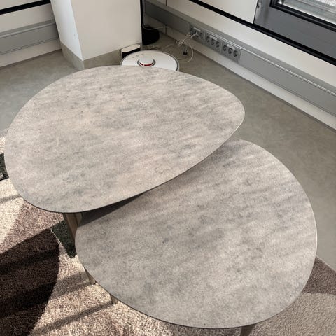 Bord 2: Ø60, H44 cm. Vekt 14,5 kg. Ny pris 11 285,-