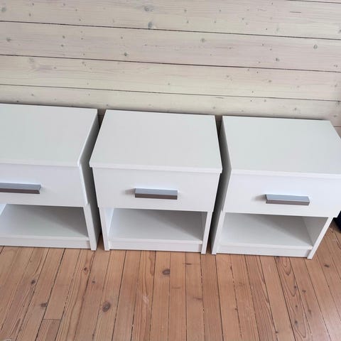 Pent brukt nattbord med en stor og en liten skuff selges billig.