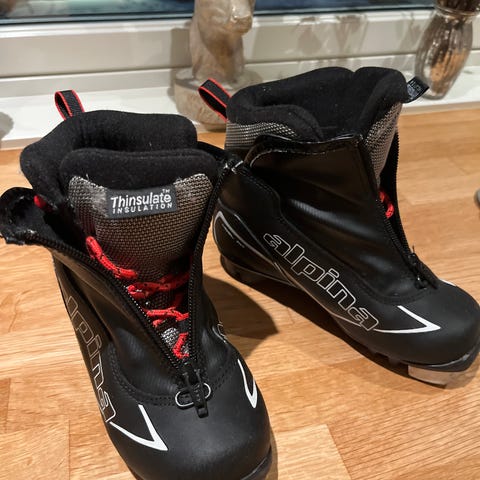 Alfa langrennssko for barn i størrelse 33. Skoene har snøring foran. Innvendig polstring rundt ankel for bedre støtte og komfort, varmt fôr. Slitne på tuppen, men mye bruk igjen. Må hentes (Bergen sentrum).