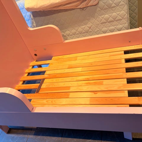 IKEA juniorseng i rosa farge. Sengen har høye gavler og sidekanter som gir god innramming av madrassen. Passer til barn som har vokst ut av sprinkelseng og over i juniorsengstørrelse. Egnet til bruk på barnerom.
