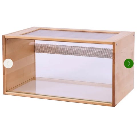 fuglekasse i tre med gjennomsiktig akrylvindu i front. Kassen har rundt inngangshull på siden og en liten sittepinn på innsiden. Lokket kan åpnes fra toppen og lukkes med metallhaspe, noe som gir enkel tilgang til innsiden. Egnet som hekkekasse eller redekasse for mindre burfugler, for eksempel undulat eller nymfeparakitt, avhengig av artens behov og anbefalte kassestørrelser.