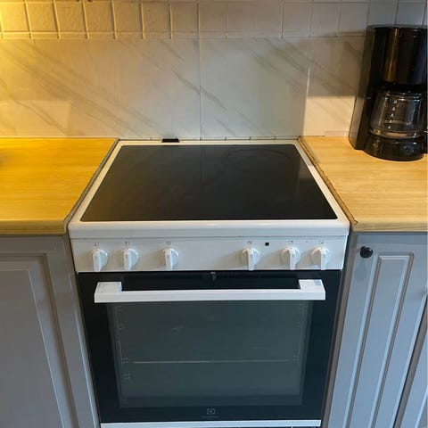 Helt grei og vanlig komfyr selges rimelig, den virker uten problem, har ikke alle de hundre forskjellige funksjoner, men er helt vanlig og fungerer utmerket til vanlig bruk.