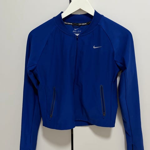 H&M Sport løpejakke for dame i størrelse S. Jakken er korallrød og har hel glidelås i front. Den har lange ermer med refleksdetaljer for bedre synlighet i mørket, samt glidelåslommer i sidene. Lett og tynn treningsjakke egnet til løping og annen utendørstrening.