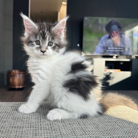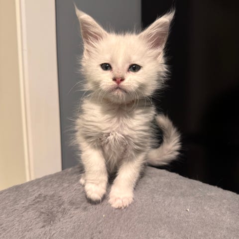 Nyderlig Maine coon kattunge søker sitt drømme hjem. Hun skal på første helsesjekk hos veterinær den 13.03.2026 da han er 9 uker der vil hun få sin første vaksine, pass, helseattest, ormekur og ID chip. Den andre helsesjekken vil bli 10.04.2026 når hun er 13 uker der vil hun få andre vaksine, ormekur og helseattest.🥰