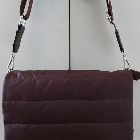 Lekker liten lærveske med en dekorativ H foran. Lukkes med trykknapp og glidelås. Lang rem følger med. Sort og brun farve.