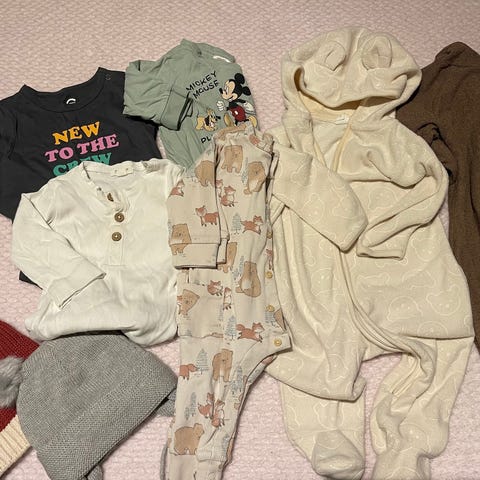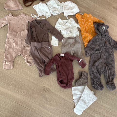 Selger en fin klespakke til baby i størrelse 3–6 måneder. Klærne er nesten som nye – noen plagg er aldri brukt, og resten er brukt veldig forsiktig.