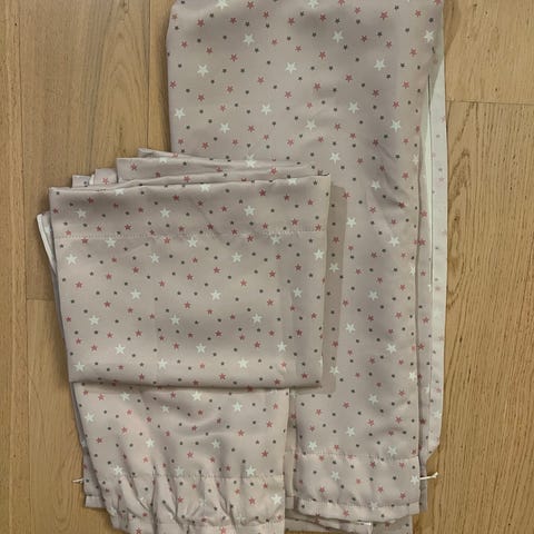 Har hengt på barnerommet til sønnen og er pent brukt. Koster 499,- per gardin ny. Selges for 400-,- for begge.