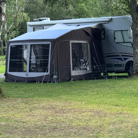 Selger en Fiamma Caravanstore ZIP XL 440 posemarkise m/vegger da vi går over til lufttelt.