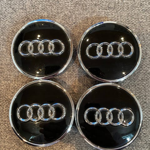 Audi felgsenterkopper i grå farge. Settet består av 4 stk senterkopper med Audi-logo, beregnet for montering i midten av felger. Passform og dimensjoner følger originalt Audi-design, med plastkonstruksjon og integrerte klips på baksiden for feste i felg.