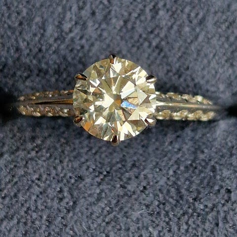18K hv. gull diamantring 1.00ct. + 0.11ct.