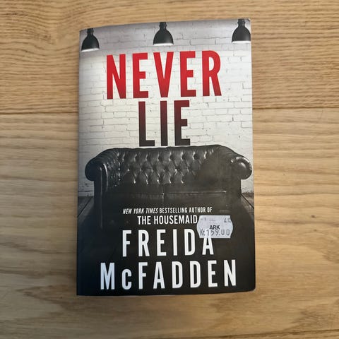 Freida McFadden’s Never Lie. Tekst på engelsk. Svært god bok! En av McFadden’s beste.