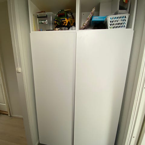 Selger helt nytt overskap Jysk, kjøpt forrige uke. Selger pga ikke plass der det var tenkt. Skrudd hengsler feil på inni skapet, ses på bilde 3. ellers ingen bruksmerker