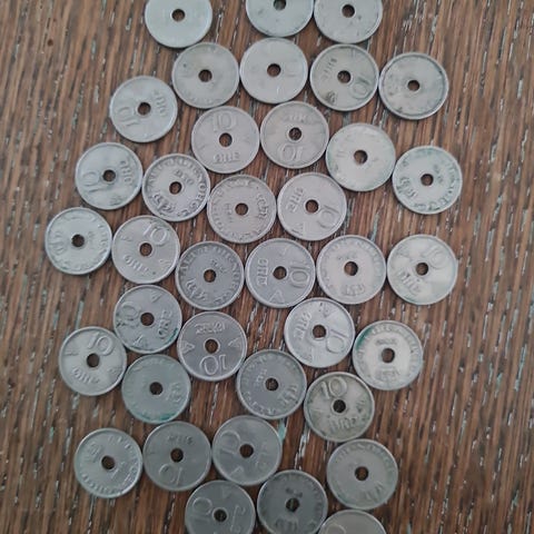 Dette er 10 øringer fra 1924-1941 samlet og laget som et smykke.