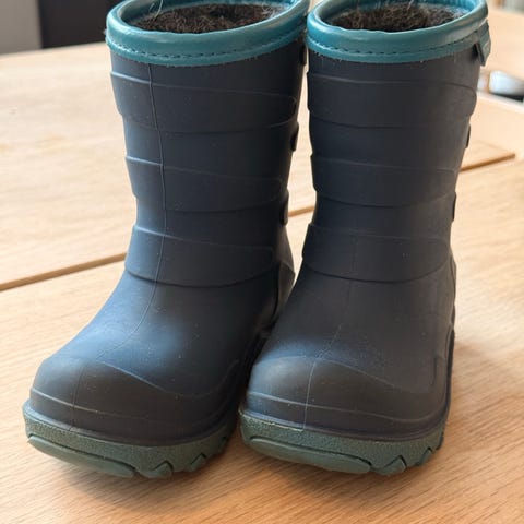 Barnestøvler i størrelse 23 med for. Pent brukt, men noen små merker etter bruk, som er synlig på bildene.