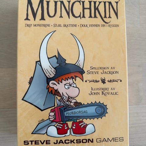 Steve Jackson Games Munchkin Deluxe brettspill. Utgaven inneholder basisversjonen av Munchkin med brett, figurer og kort. Spillerne går ned i en dungeon, bekjemper monstre, samler skatter og forsøker å nå nivå 10. Spillet er et humoristisk fantasyspill med kortbasert kamp og nivåsystem, beregnet for flere spillere rundt bordet.