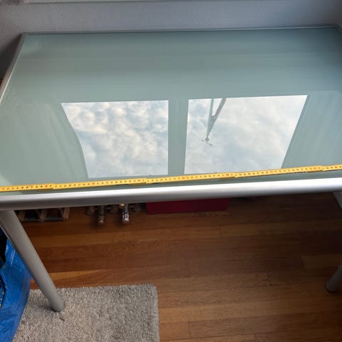 Skrivebord m tung glassplate gis bort. Ingen synlige merker. Usikker på merke