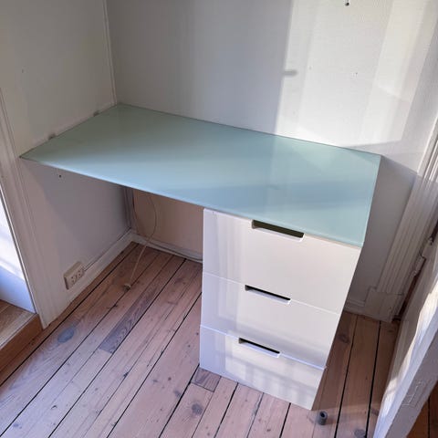 Skrivebord m glassplate gis bort