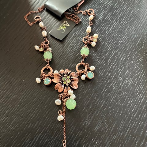 Lekkert blomster smykke, m emalje fra A&C. 50 cm . Selges for kr 2oo