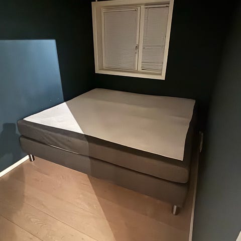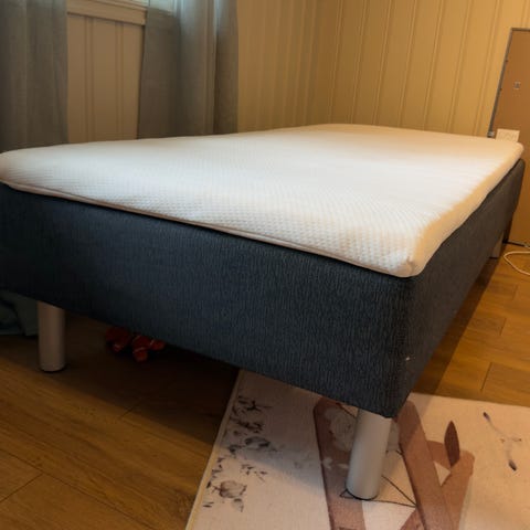 Gir bort seng med overmadrass. Senga er godt brukt, mens overmadrassen er kun et halvt år gammel.