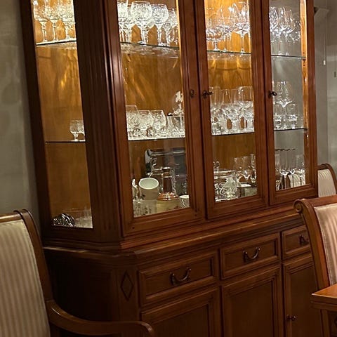 Selger nydelig vitrineskap i heltre Kirsebærtre fra Sandvik. Lys i glasskapet.